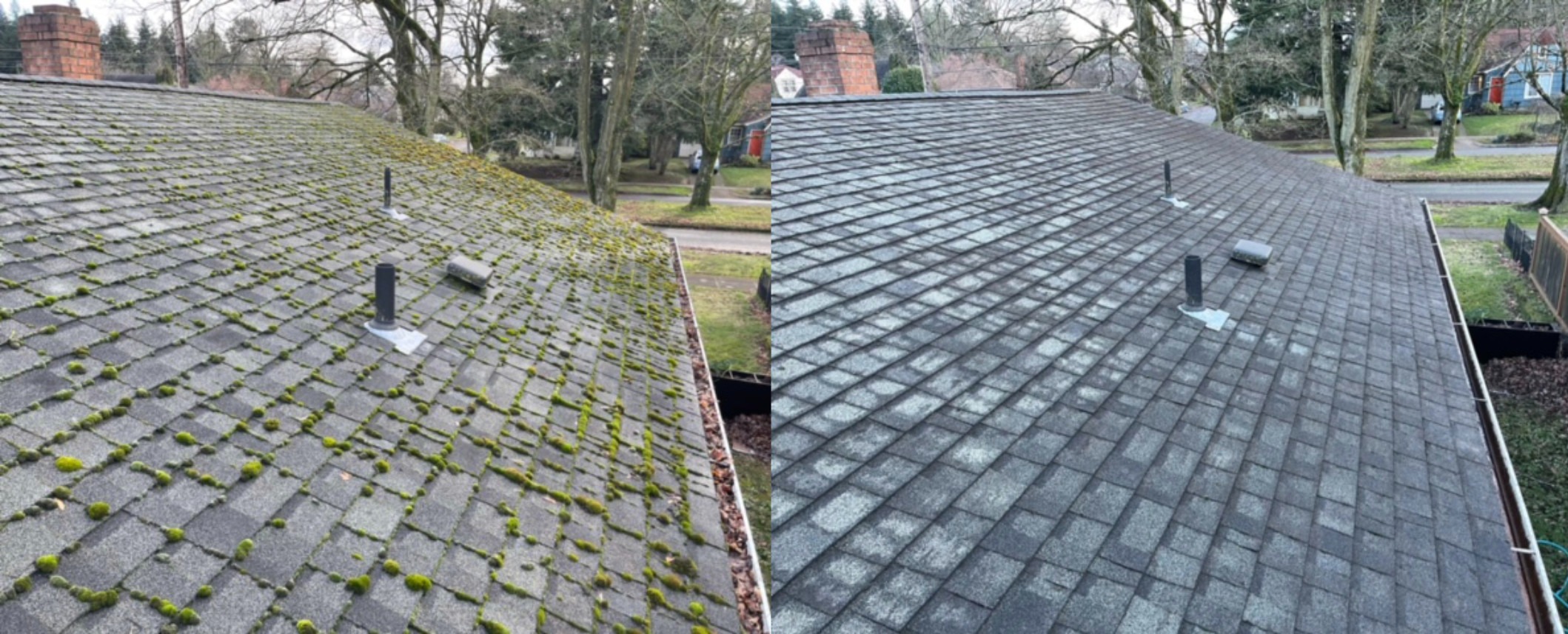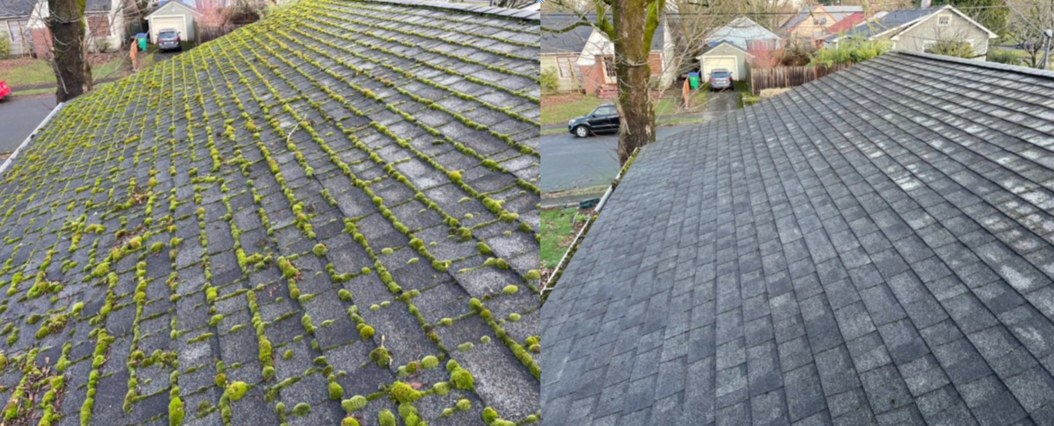 Moss & algae left to grow freely can lead to several problems on roofs, moss can degrade shingles, get beneath them and create opportunities for leaks & roof damage. Get the most out of your roof with one of our regular roof maintenance services.